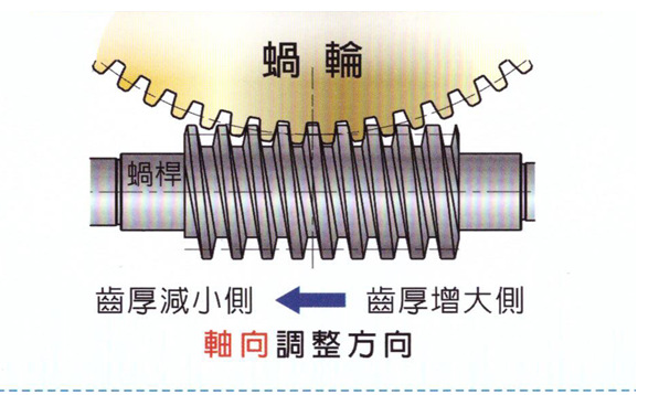 精密無間隙雙導(dǎo)程蝸輪蝸桿系統(tǒng)結(jié)構(gòu)是根據(jù)蝸輪蝸桿在正逆運轉(zhuǎn)時的齒厚不同的變化來設(shè)計的,通過蝸桿的軸向移動,使蝸輪蝸桿間的齒隙連續(xù)發(fā)生變化,保持蝸輪蝸桿的正確位置的基礎(chǔ)上可調(diào)整后退距離,從而達到理想的齒隙削除。