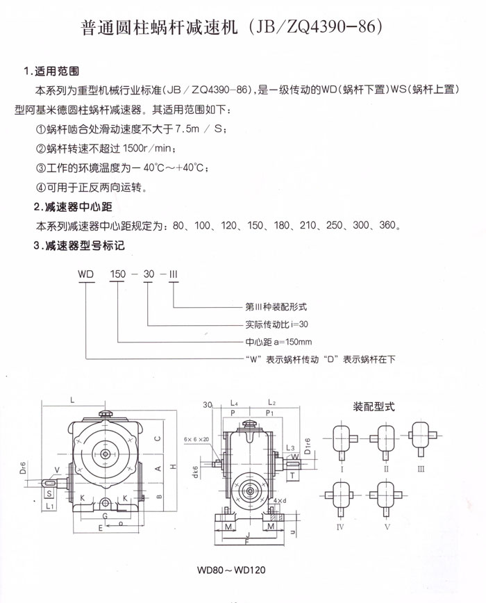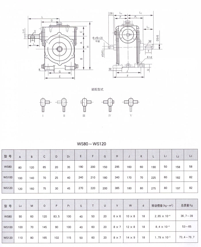 WS蝸桿減速機(jī)80~120安裝尺及裝配型式